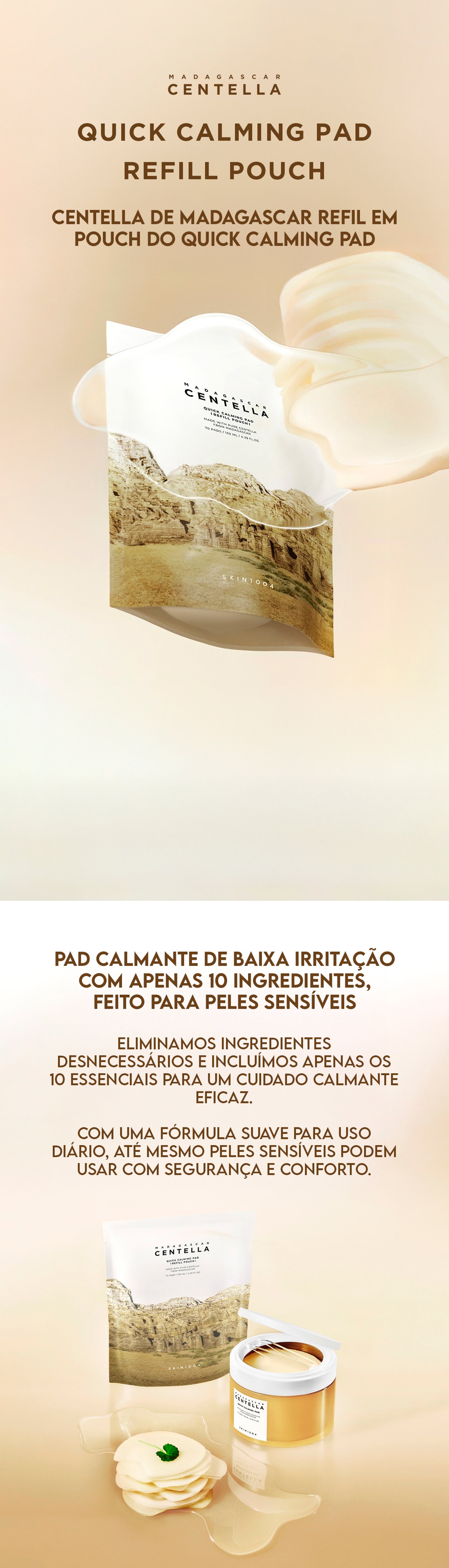 🧴 70 discos pré-umedecidosO SKIN1004 Centella Quick Calming Pad é um disco de algodão embebido em uma essência calmante e refrescante, formulado com Centella Asiática e Pantenol, ideal para acalmar, hidratar e equilibrar a pele sensível ou irritada em poucos minutos.Perfeito como uma alternativa rápida às máscaras faciais, ele oferece cuidado imediato sempre que a pele precisar. Sua fórmula contém 49% de Centella Asiática, conhecida por sua poderosa ação anti-inflamatória, calmante e reparadora...