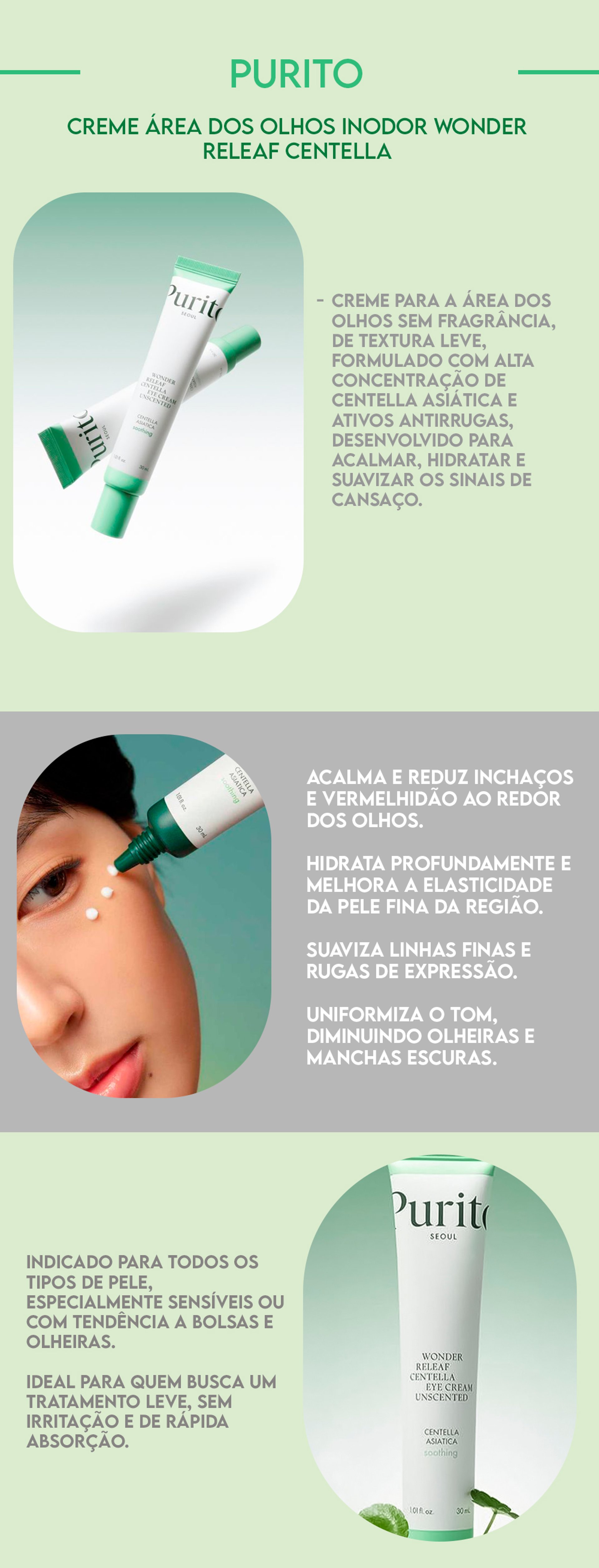 Purito Creme Área dos Olhos Inodor Wonder Releaf Centella 30ml