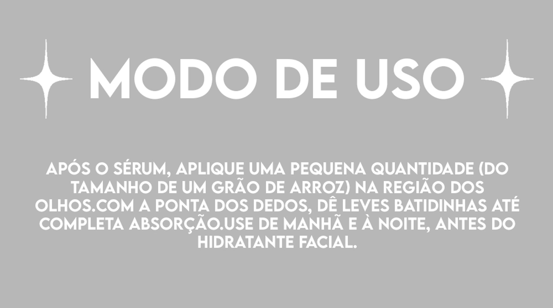Após o sérum, aplique uma pequena quantidade (do tamanho de um grão de arroz) na região dos olhos.