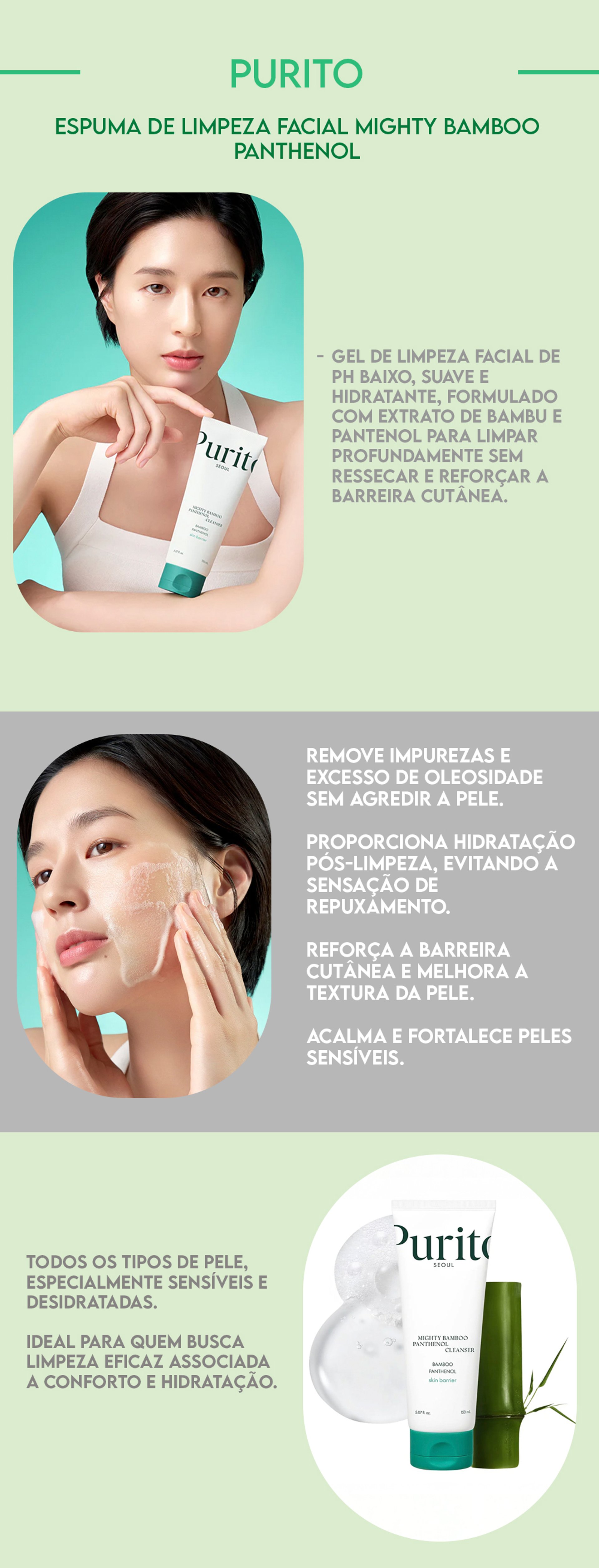 Purito Espuma de Limpeza Facial Mighty Bamboo Panthenol 150ml