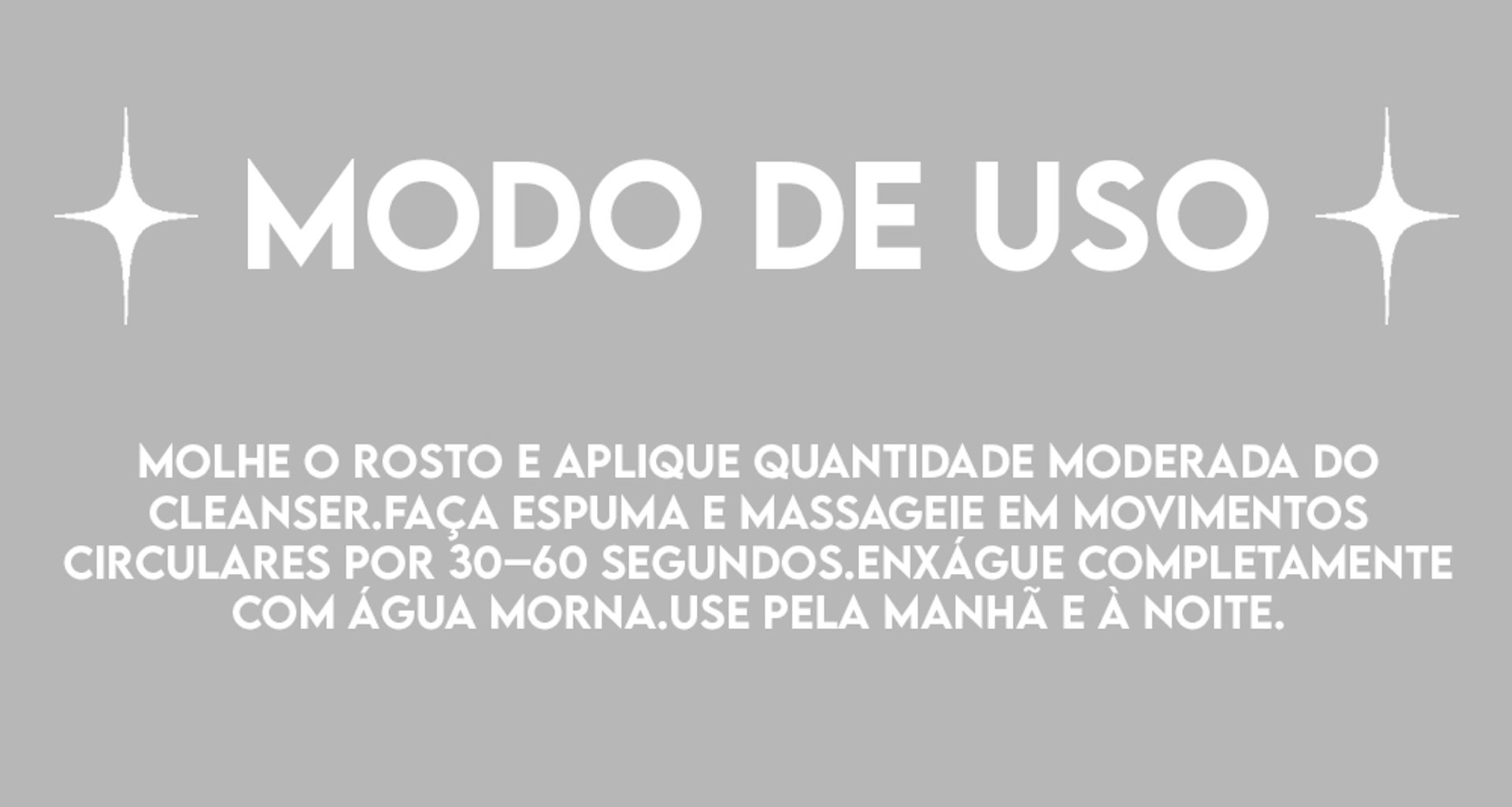 Faça espuma e massageie em movimentos circulares por 30–60 segundos.