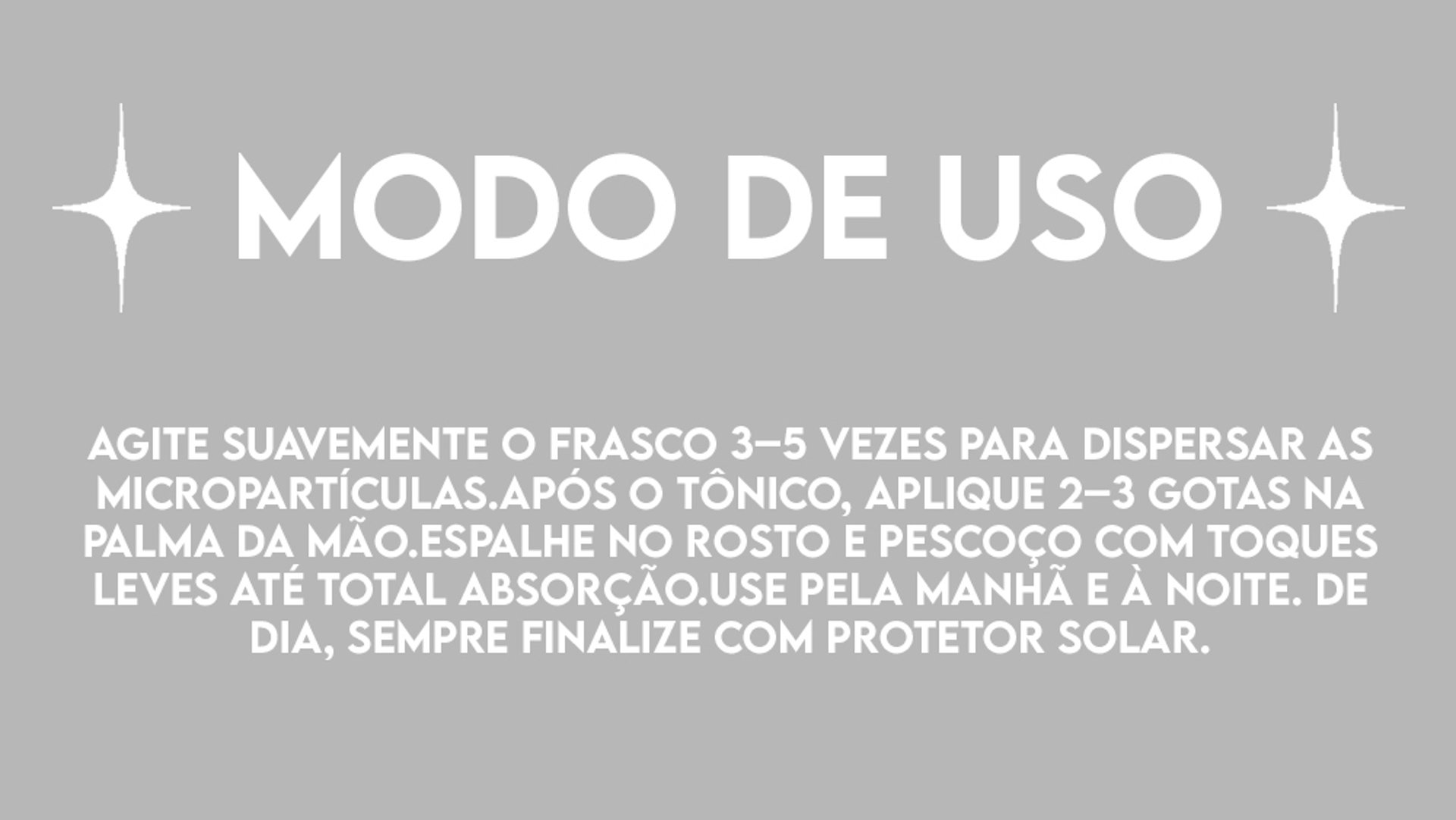 Após o tônico, aplique 2–3 gotas na palma da mão.