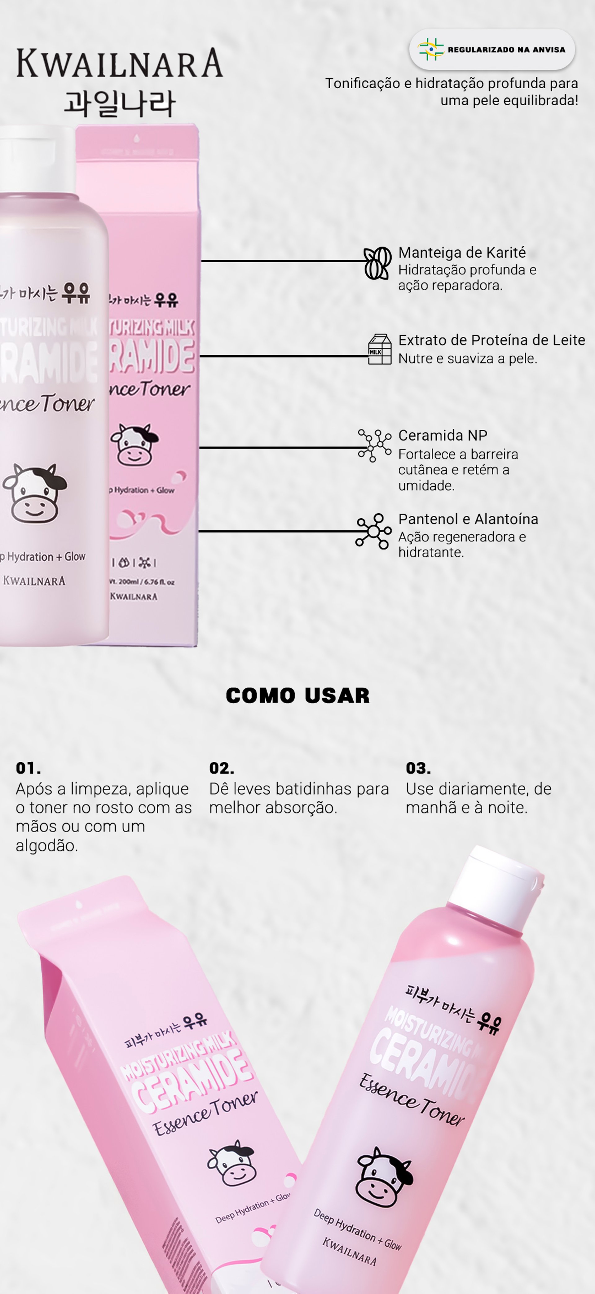 Kwailnara Toner Facial Hidratante de Ceramida e Leite 200ml