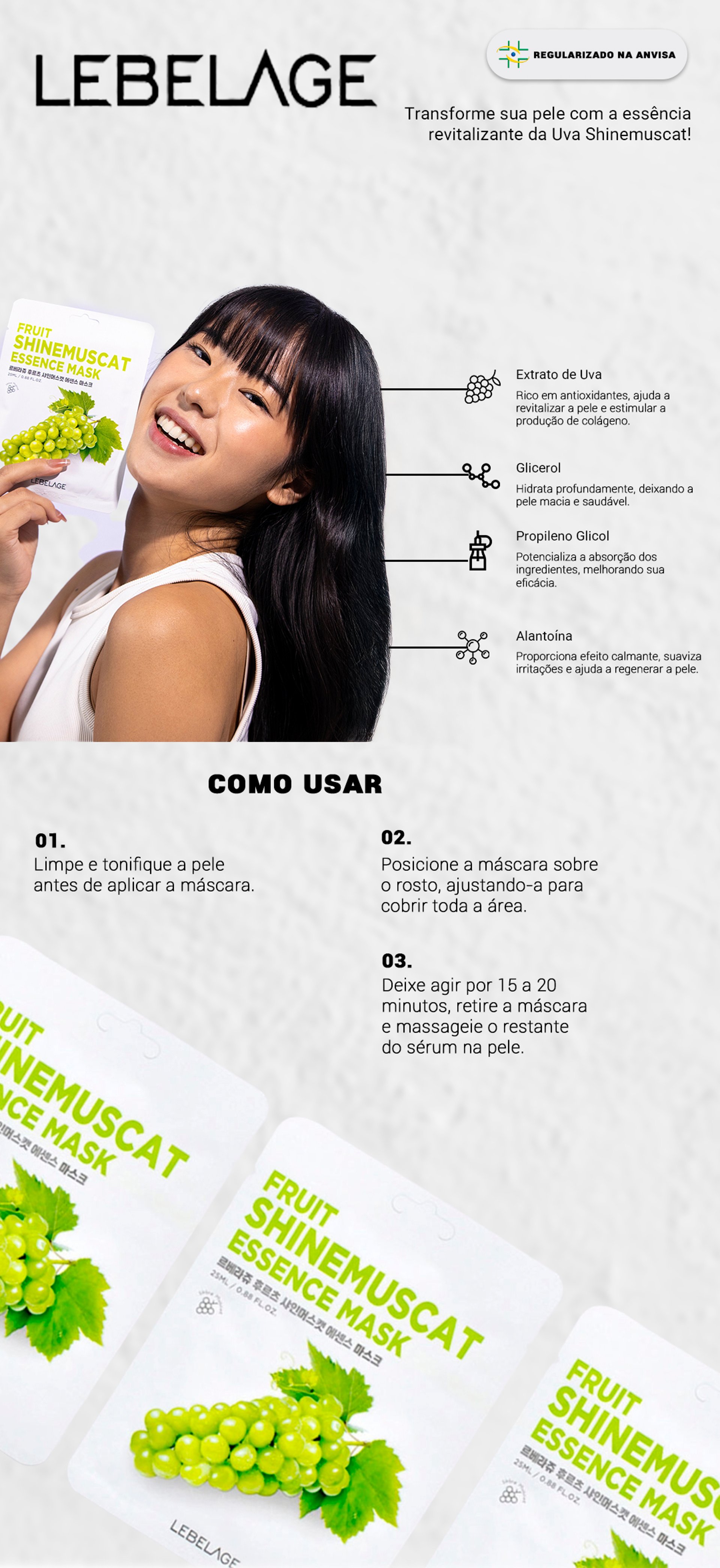 Kit 10 Lebelage Máscara de Hidratação Essência de Shinemuscat 28ml