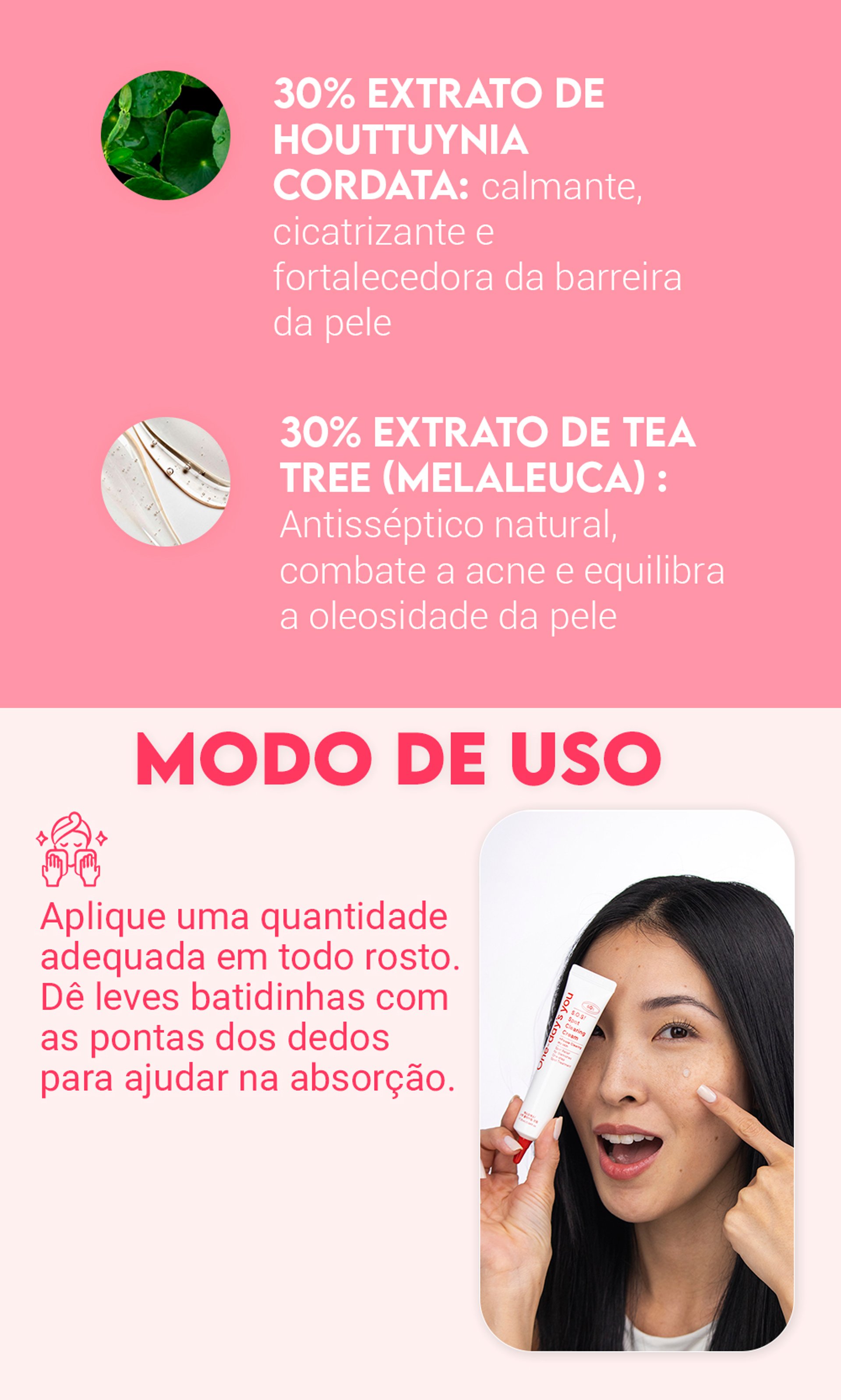 Creme super reparador para peles acneicas e sensíveis.Uniformiza o tom, protege contra futuras irritações com uma barreira hidratante. Fortalece a Barreira Cutânea servindo como tratamento a longo prazo. ✔️ Recomendado para Peles Acneicas e Sensíveis✔️ Pode ser usado para uniformizar tom da pele manchada;✔️ Acalma a pele sensível e previne futuras irritações. ✔️ Dermatologicamente testado (Germany Dermatest) Principais Ingredientes▪️ 30% de Extrato de Houttuynia Cordat...