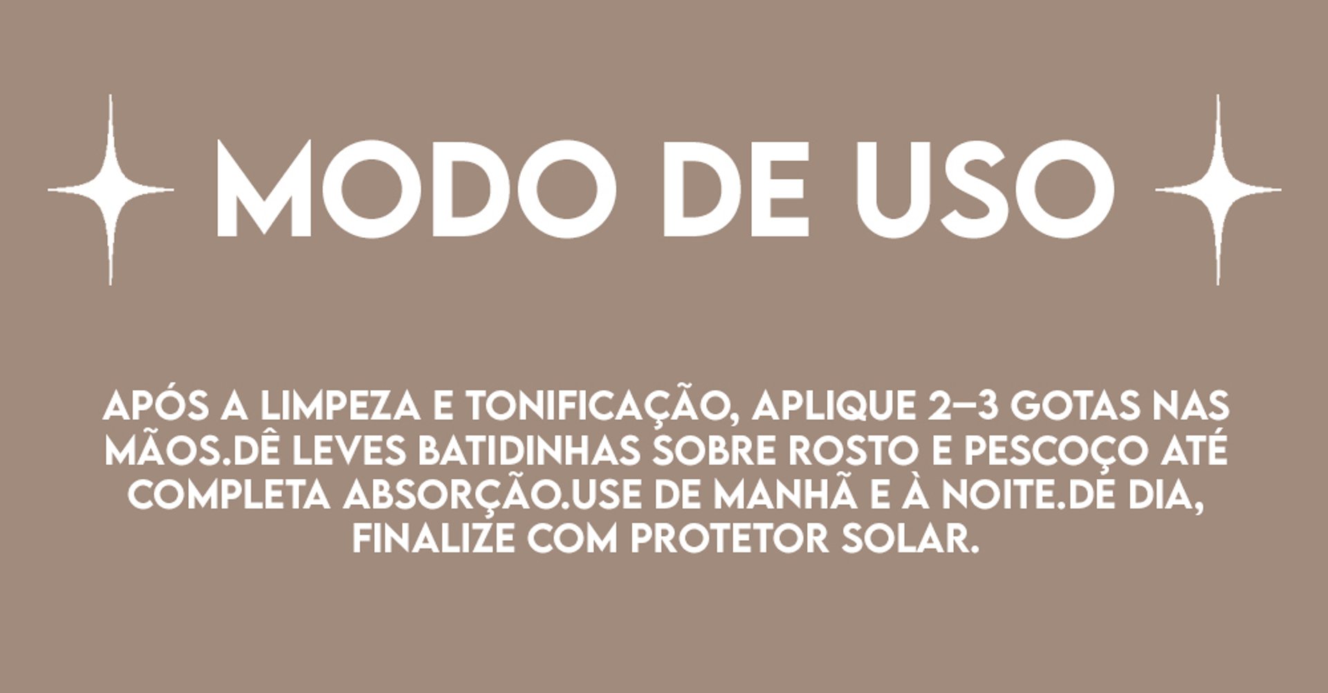 Após a limpeza e tonificação, aplique 2–3 gotas nas mãos.