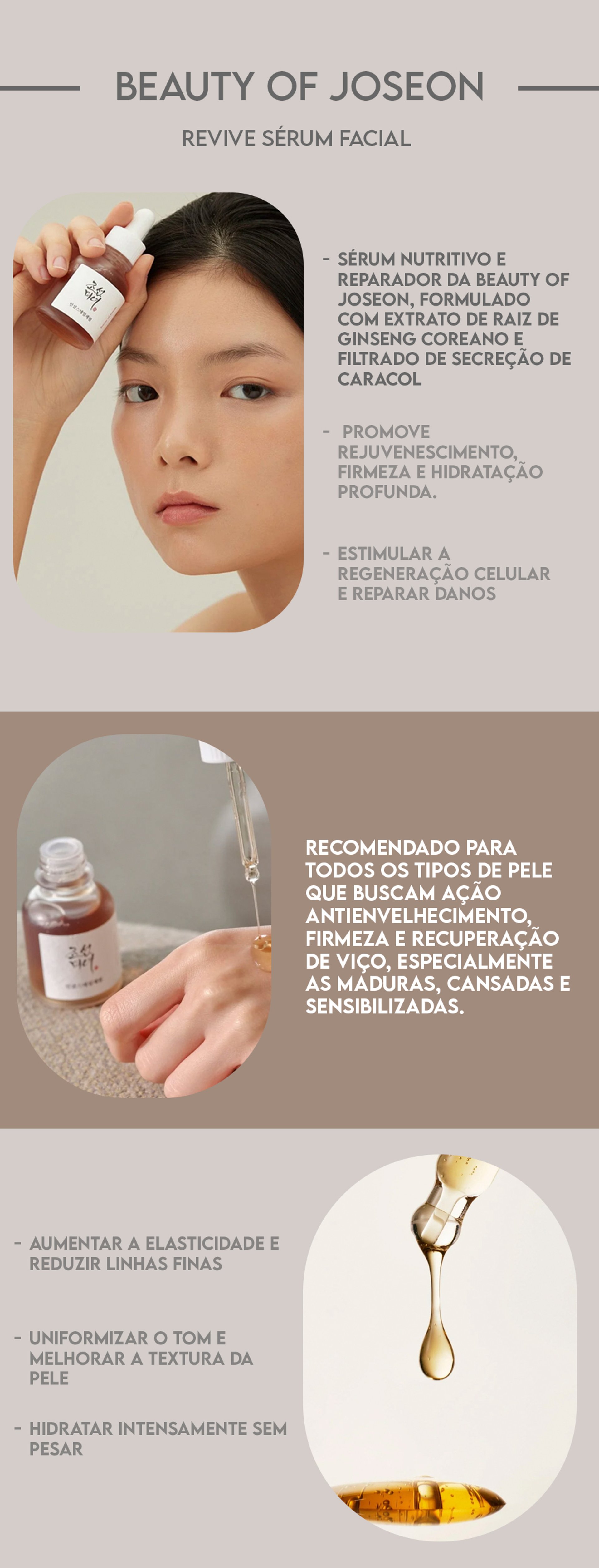 Um sérum nutritivo e reparador da Beauty of Joseon, formulado com extrato de raiz de ginseng coreano e filtrado de secreção de caracol. Promove rejuvenescimento, firmeza e hidratação profunda. Estimular a regeneração celular e reparar danosAumentar a elasticidade e reduzir linhas finasUniformizar o tom e melhorar a textura da peleHidratar intensamente sem pesar Recomendado para todos os tipos de pele que buscam ação antienvelhecimento, firmeza e recuperação de viço, especialmente as ma...