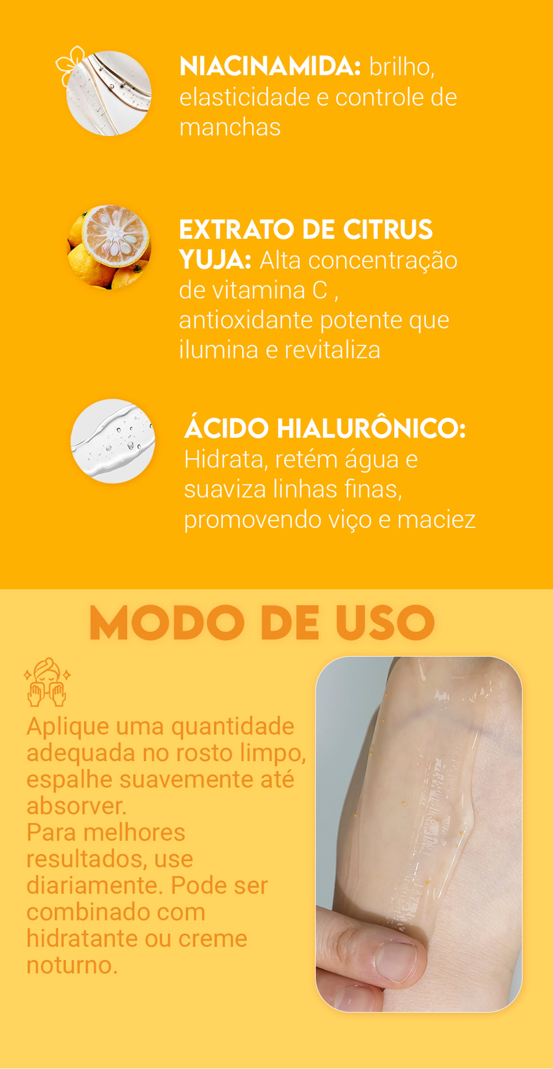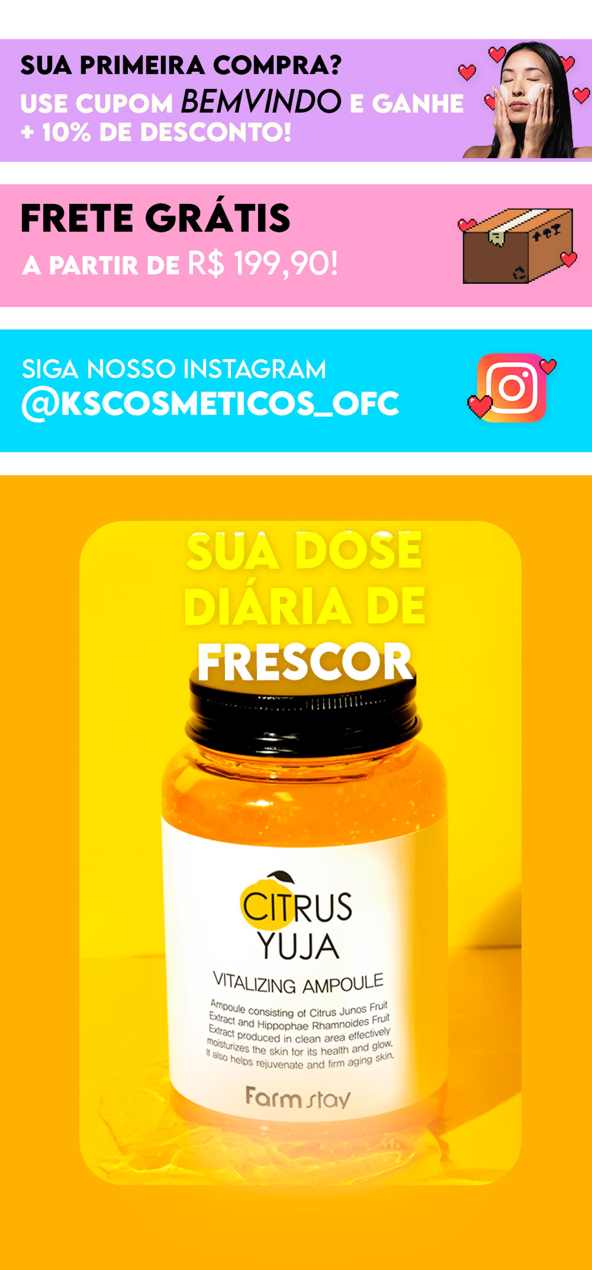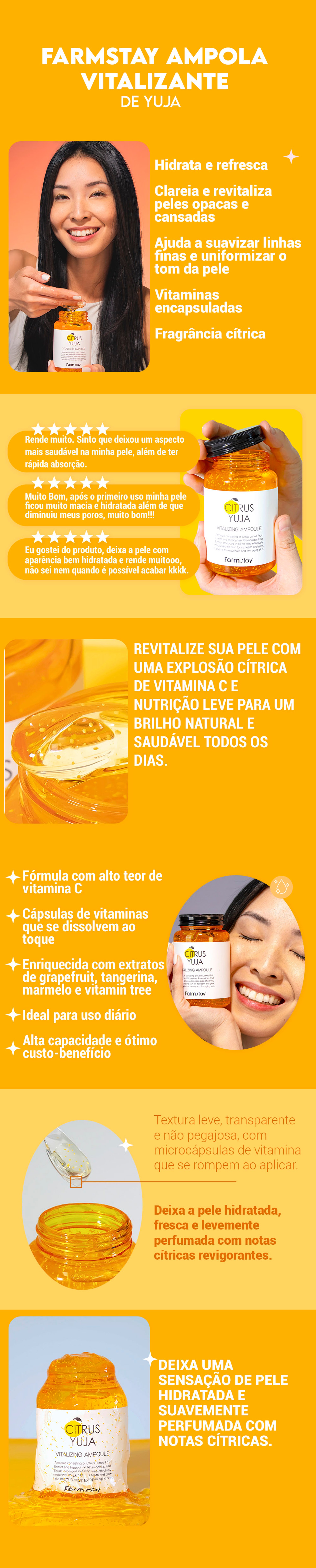 Uma ampola de alta capacidade com fragrância cítrica suave e textura leve, formulada com extrato de yuja (fruta cítrica coreana) rica em vitamina C — com teor até 3 vezes maior que o do limão. Essa combinação ajuda a revitalizar a pele e proporciona um aspecto mais iluminado e hidratado.A fórmula contém cápsulas visíveis de vitaminas que se dissolvem ao contato com a pele, oferecendo uma sensação fresca e nutritiva durante a aplicação. Principais Benefícios:- Hidratação leve e refrescante c...