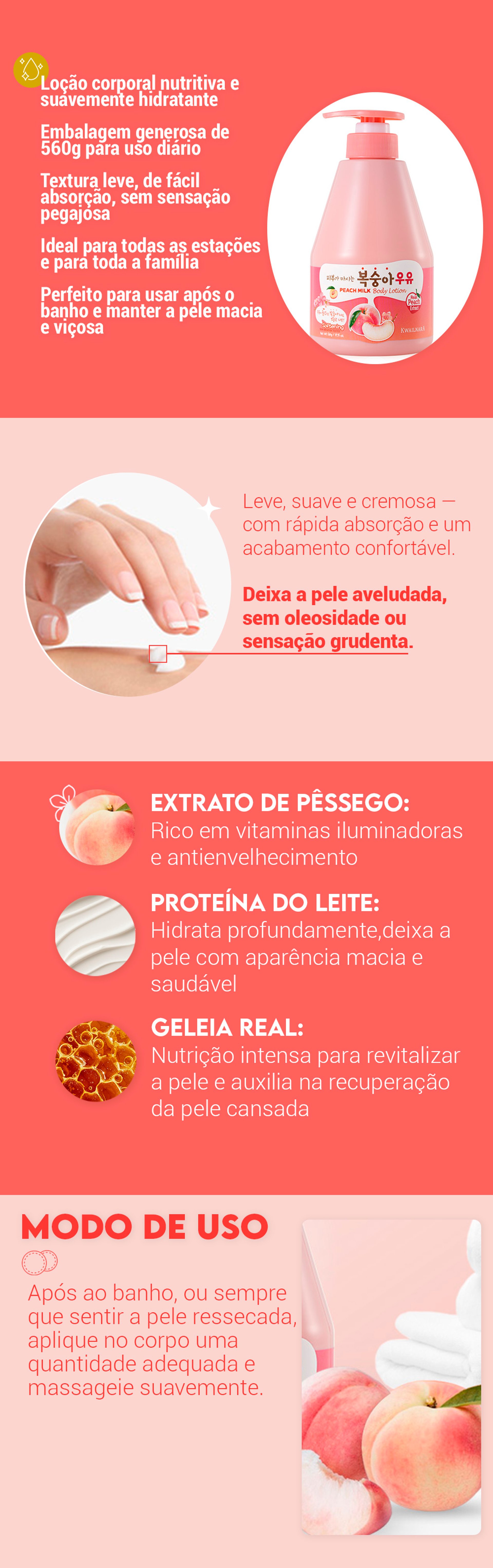 Kwailnara Loção Corporal com Leite e Pêssego 560g