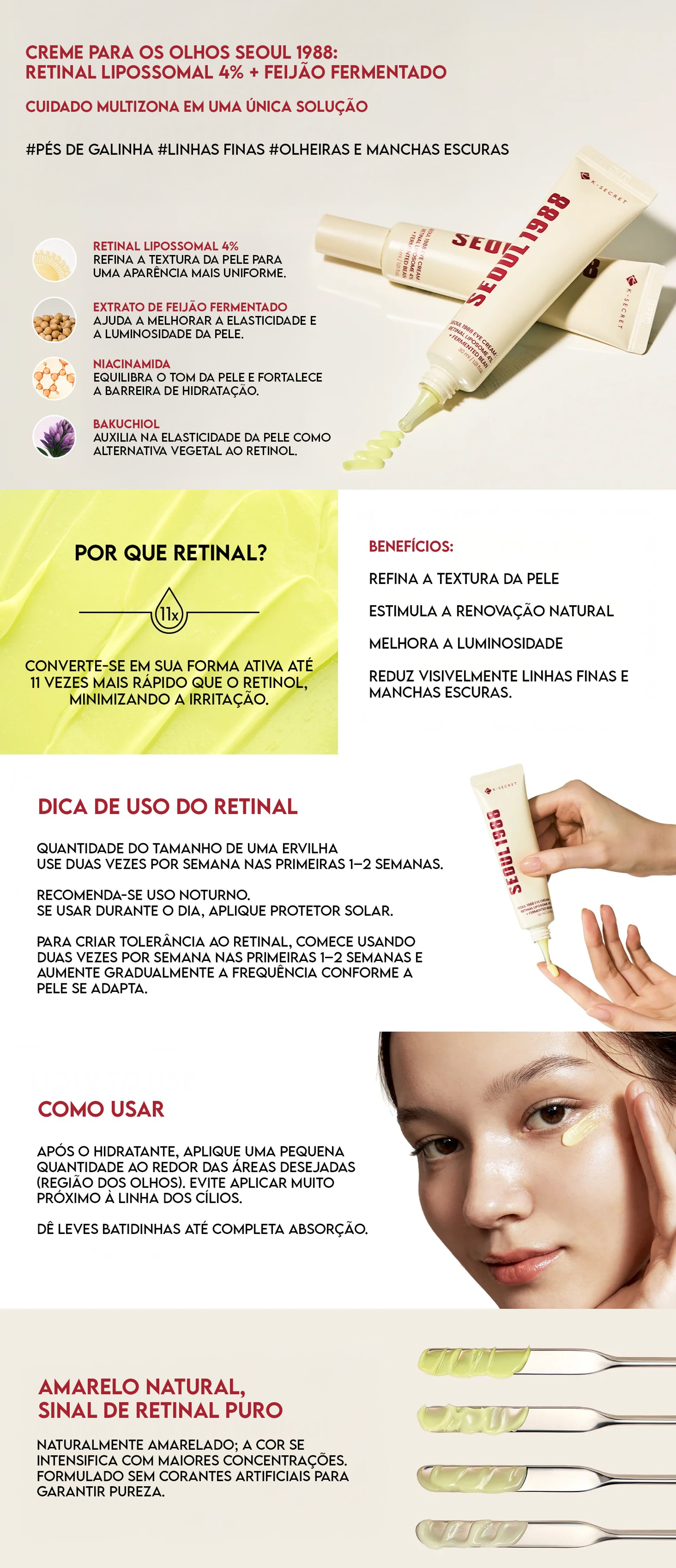K-Secret Seoul 1988 Creme para Olhos: Retinal Liposome 4% + Fermented Bean 30ml