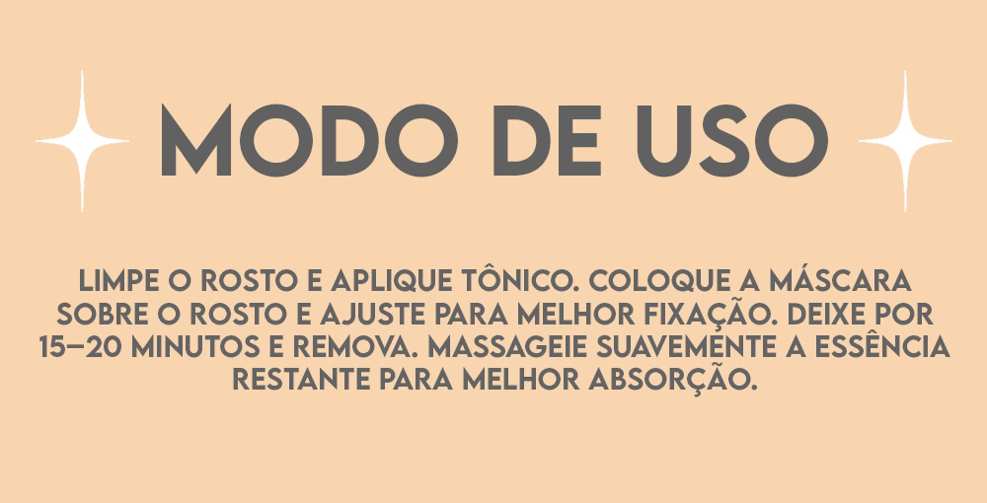 Limpe o rosto e aplique tônico. Coloque a máscara sobre o rosto e ajuste para melhor fixação. Deixe por 15–20 minutos e remova. Massageie suavemente a essência restante para melhor absorção.