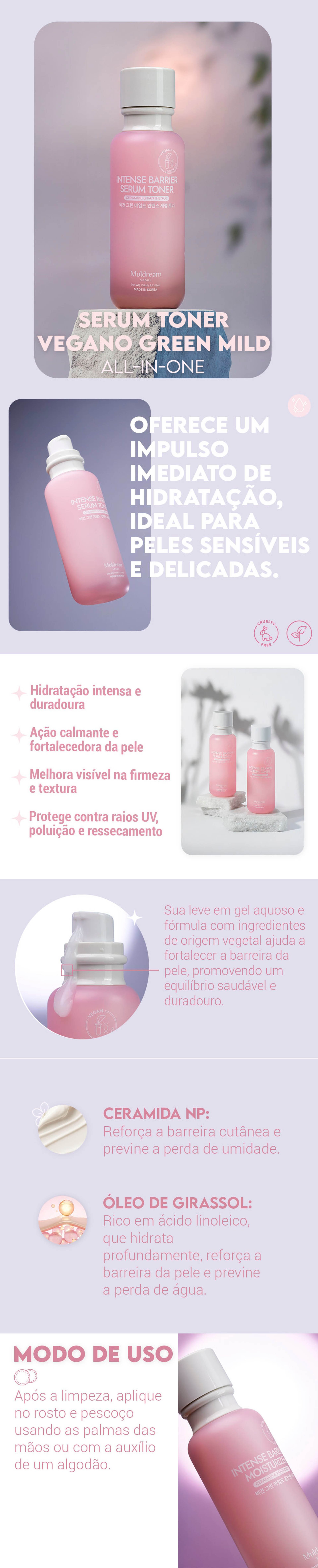 Muldream Sérum e Toner Vegan Green Mild Intense de Ceramida e Pantenol 110ml