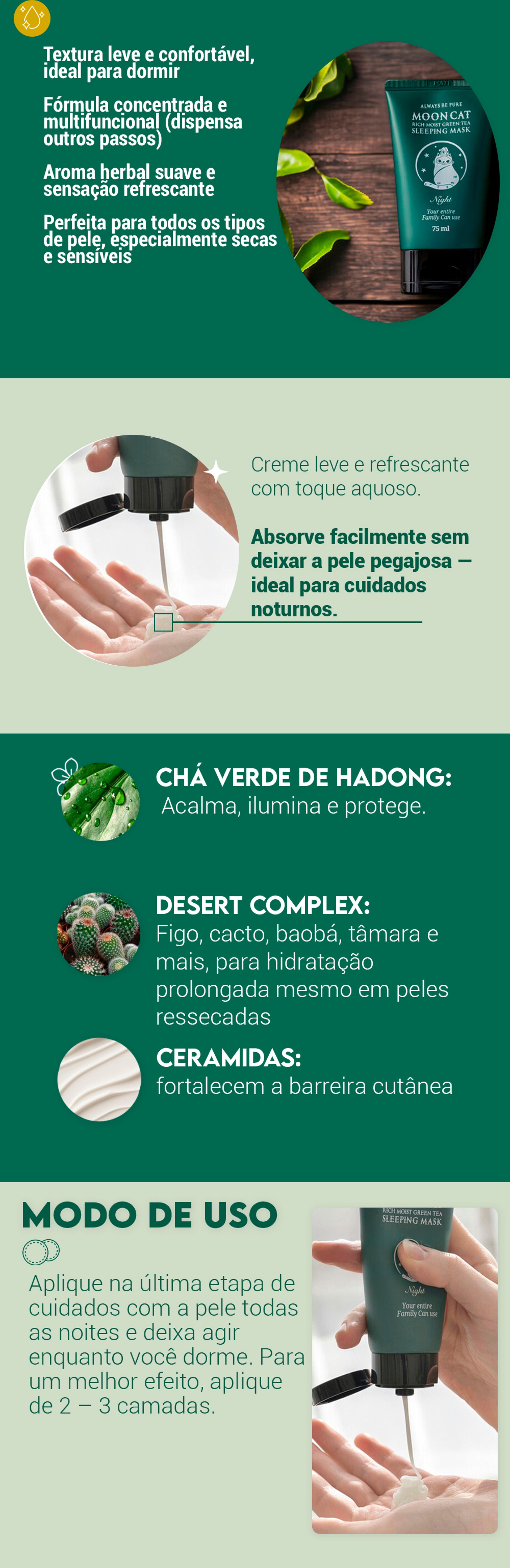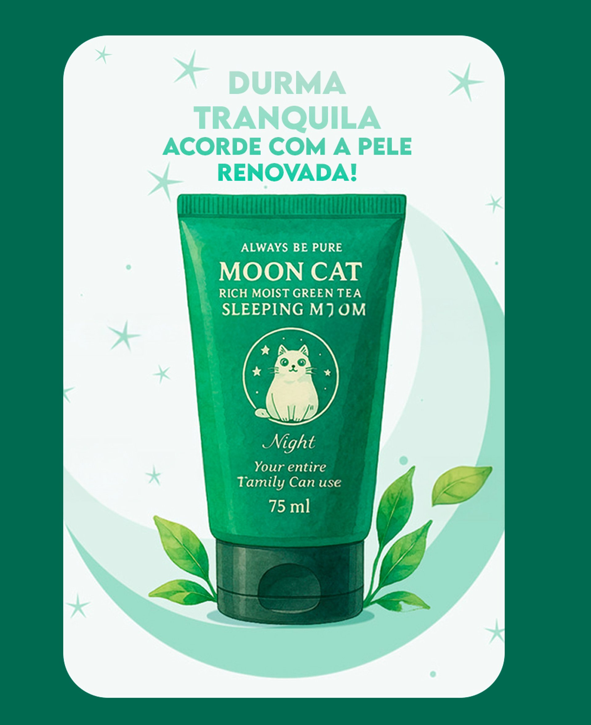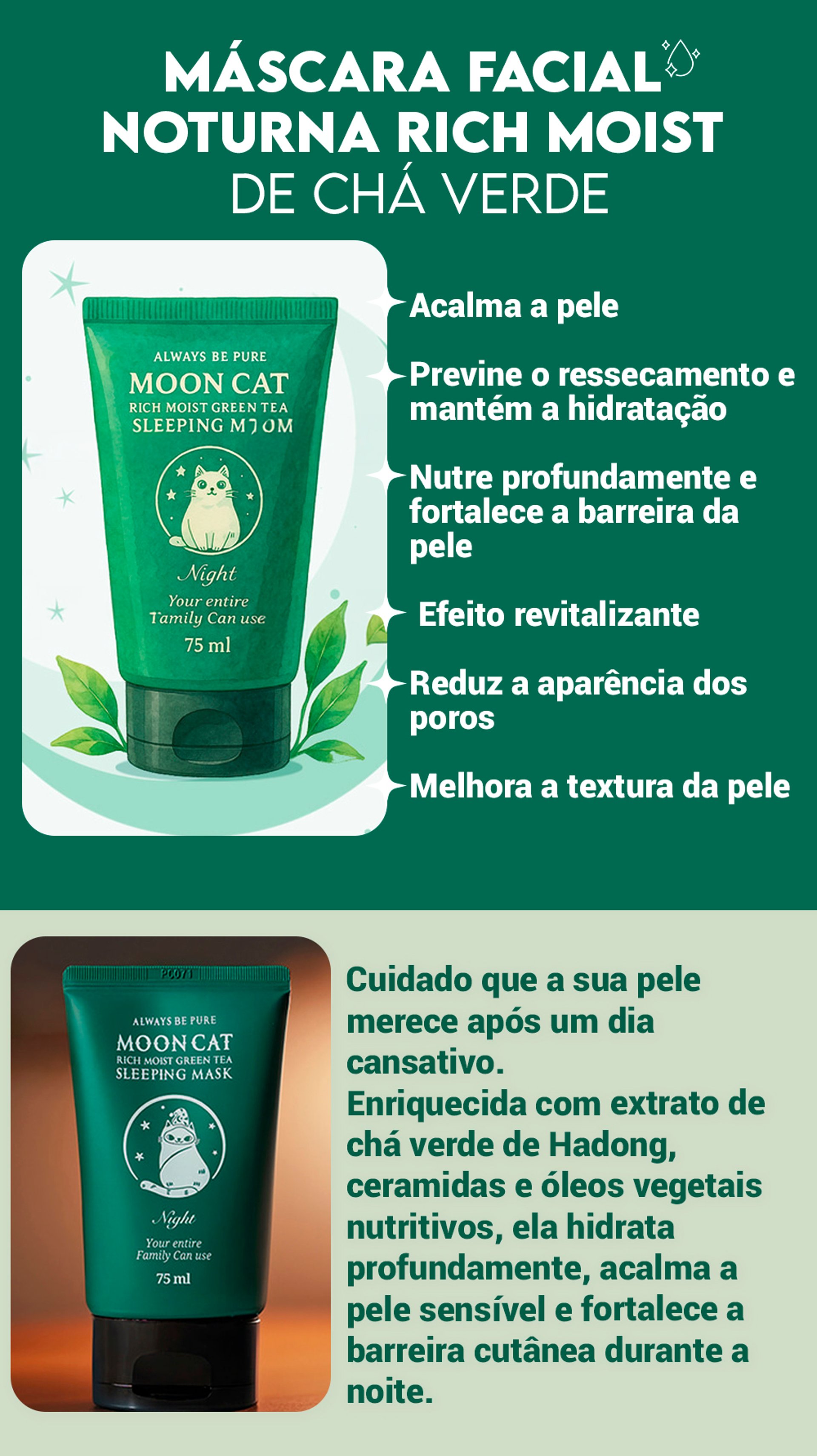 Always Be Pure Moon Cat Máscara Facial Noturna Rich Moist de Chá Verde 75ml