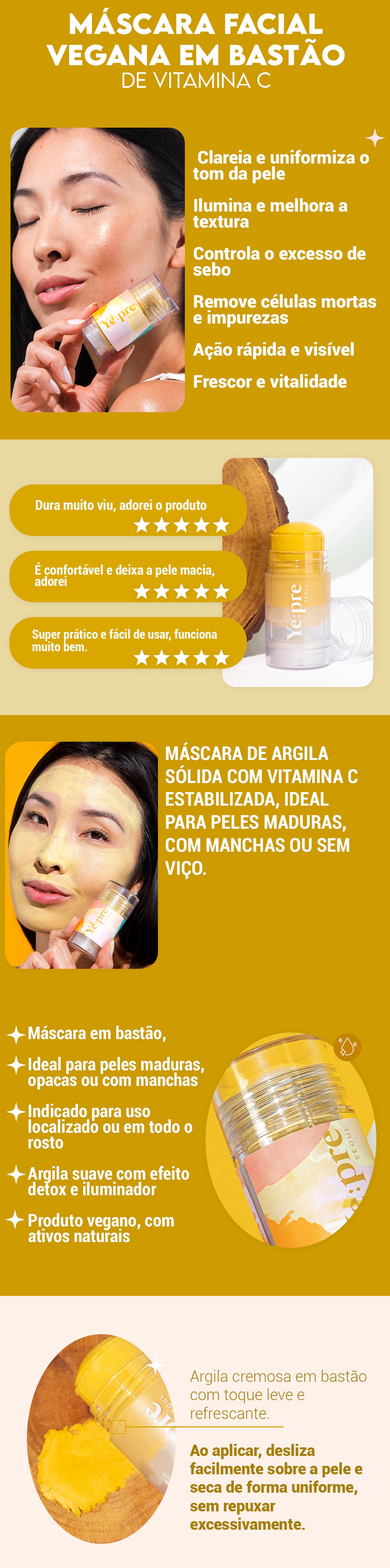 Yepre Máscara Facial Vegana em Bastão de Vitamina C 35ml